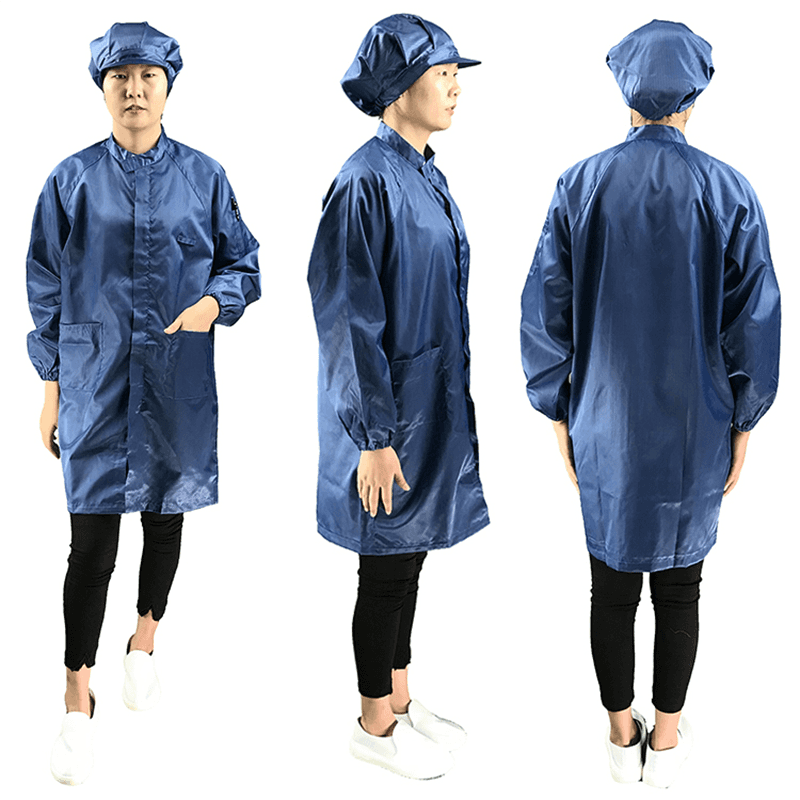 Pracovné odevy ESD používa špeciálne antistatické materiály, ktoré sú starostlivo navrhnuté a vyrobené na zabezpečenie spoľahlivej elektrostatickej ochrany v rôznych pracovných prostrediach. Táto anti-statická vlastnosť bráni hromadeniu statickej elektriny vo vnútri tela používateľa a je efektívne nasmerovaná na zem cez odev, čím chráni zariadenie pred statickým poškodením.