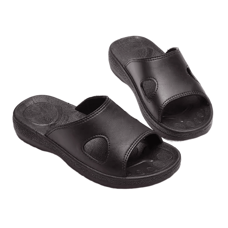 Proti-statické papuče sú vyrobené hlavne z materiálu SPU, ktorý má vynikajúci antistatický výkon. Materiál SPU (super polyuretán) má dobrú vodivosť a môže účinne viesť statický náboj z ľudského tela do zeme, aby sa zabránilo akumulácii statickej elektriny. Táto vlastnosť je obzvlášť dôležitá pre pracovné prostredie, ktoré sú mimoriadne citlivé na statickú elektrinu, ako sú elektronické dielne a čisté miestnosti. Môže efektívne chrániť elektronické vybavenie a citlivé zariadenia a vyhnúť sa poškodeniu a zlyhaniam spôsobeným elektrostatickým výbojom.