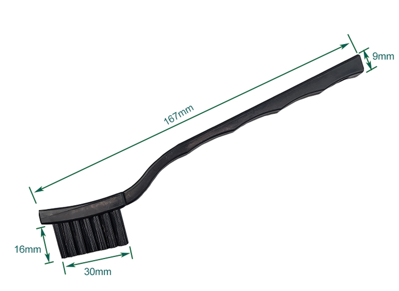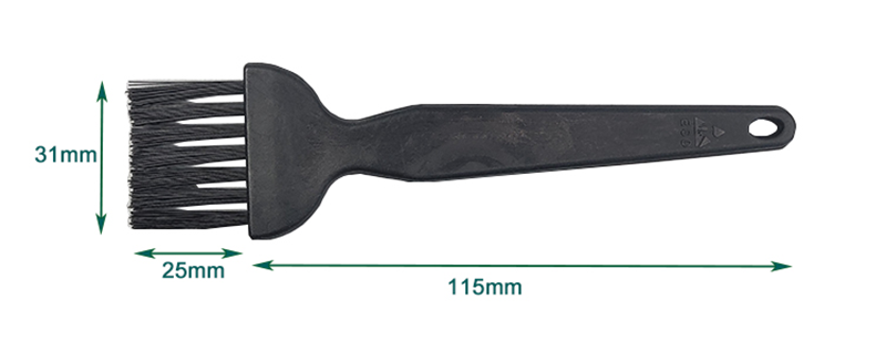 2. Ant-statické nylonové štetiny: Vybraný antistatický nylonový materiál, štetiny sú mäkké a majú vynikajúcu čistiacu schopnosť, ktorá môže preniknúť do malých medzier elektronických komponentov a účinne odstraňovať nečistoty na povrchu SMD a PCB.