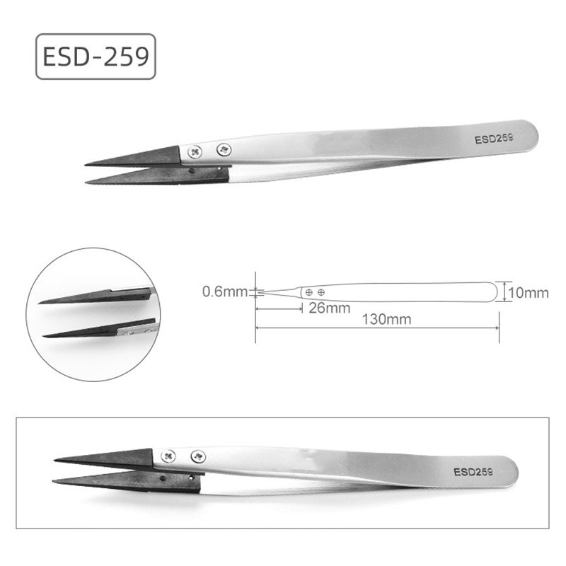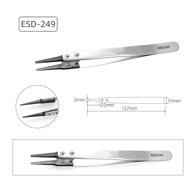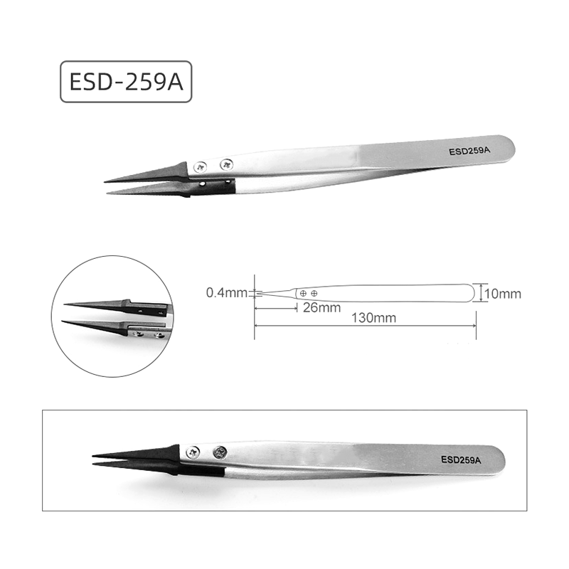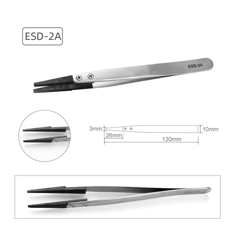 Antistatické náhradné pinzety sú nevyhnutným nástrojom v oblasti elektronickej výroby, opravy hodiniek, spracovania šperkov, inšpekcie látky a chemických laboratórií. Môže nielen presne prevádzkovať malé časti, ale tiež účinne zabrániť statickej elektrine poškodiť citlivé komponenty.
