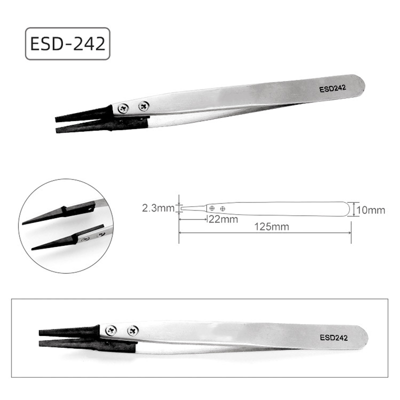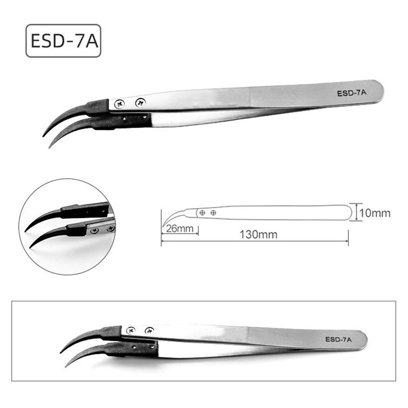 Hlava pinzety je vyrobená zo zmesi uhlíkových vlákien a špeciálnych plastu, ktorá môže účinne zabrániť akumulácii statickej elektriny a poskytnúť bezpečné prevádzkové prostredie pre statické komponenty.