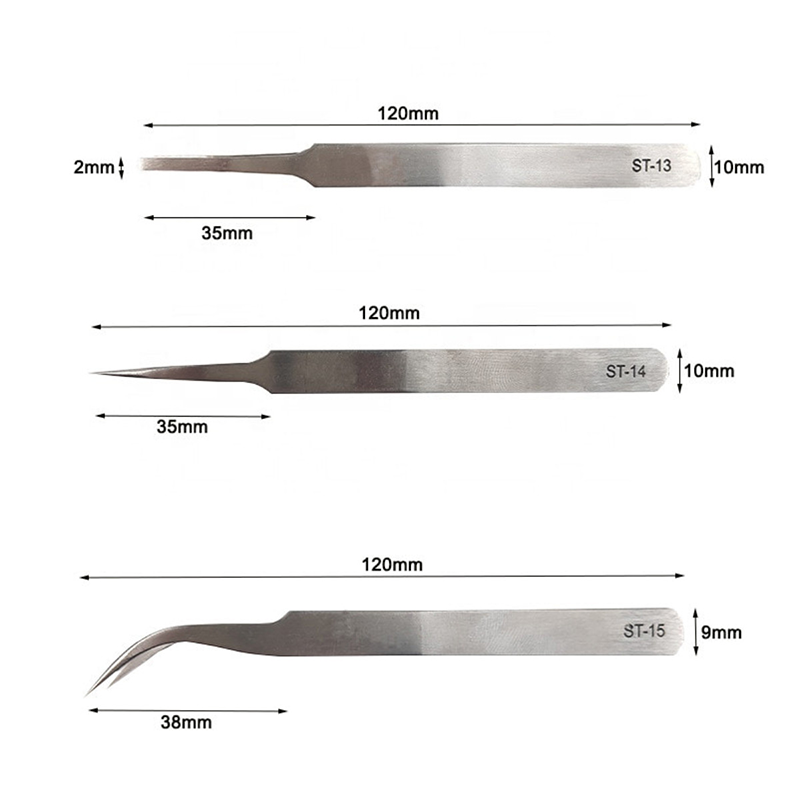 Pinzety z nehrdzavejúcej ocele sú vyrobené z vysokokvalitnej nehrdzavejúcej ocele a vďaka jemnému spracovaniu a prísnej kontrole zabezpečujú svoj vynikajúci výkon v rôznych aplikáciách s vysokým dopytom. Nasledujú hlavné črty nášho pinzety z nehrdzavejúcej ocele: